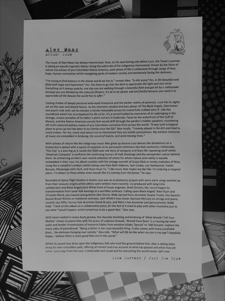 Project Type: Album press release for debut solo LP Luca. This was written for the artist, label and publicist following an email Q&A with the artist.