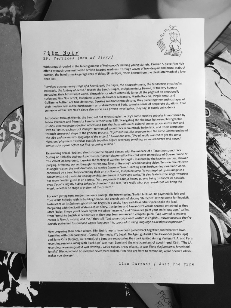 Project Type: Press release for EP ‘Vertiges (Men of Glory)’. This was written for the publicist following an email Q&A interview with the band.