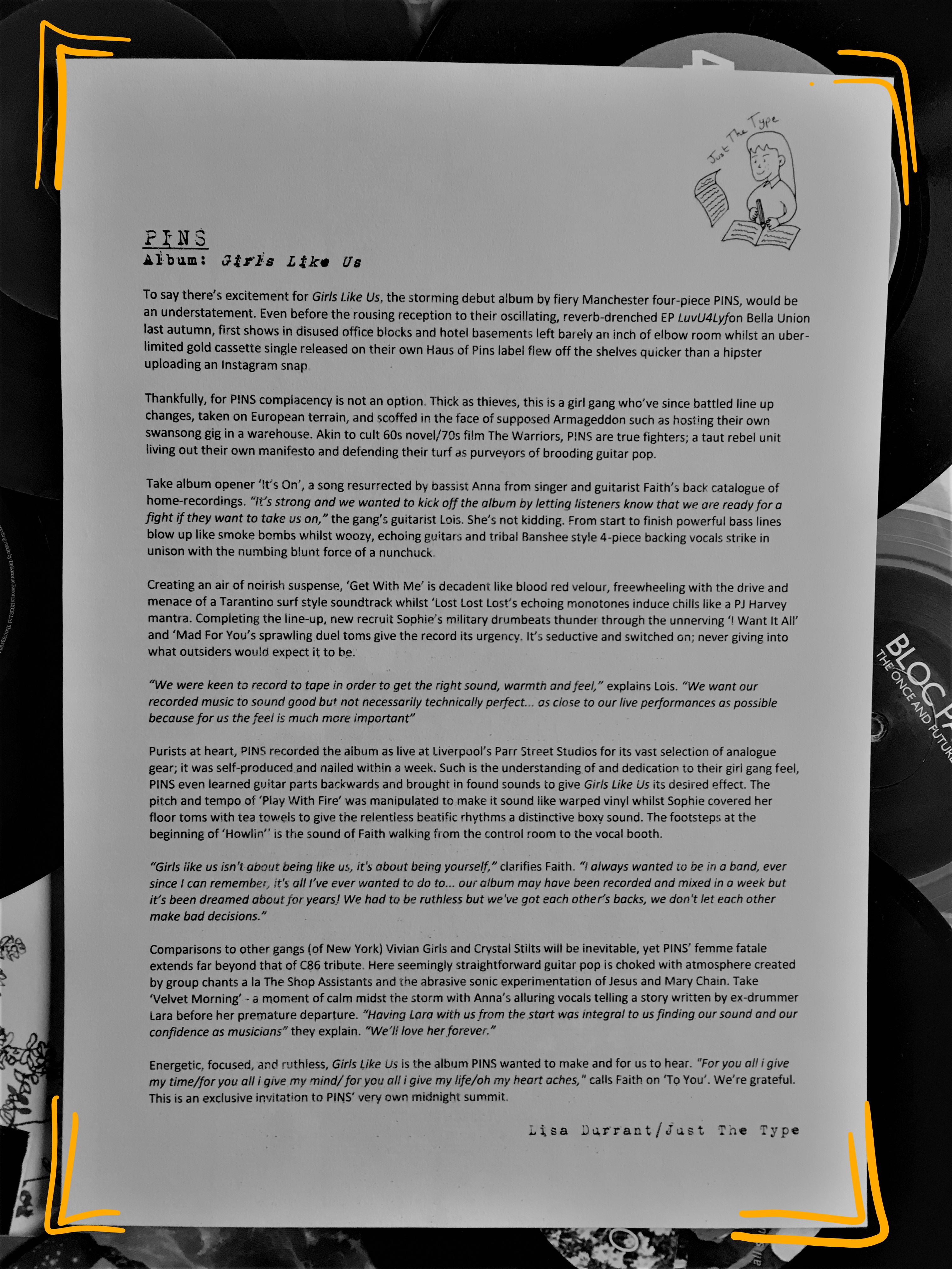 PINS Press Release Location: Manchester – UK Label: Bella Union Project Type: Album press release for debut album ‘Girls Like Us.’ Related