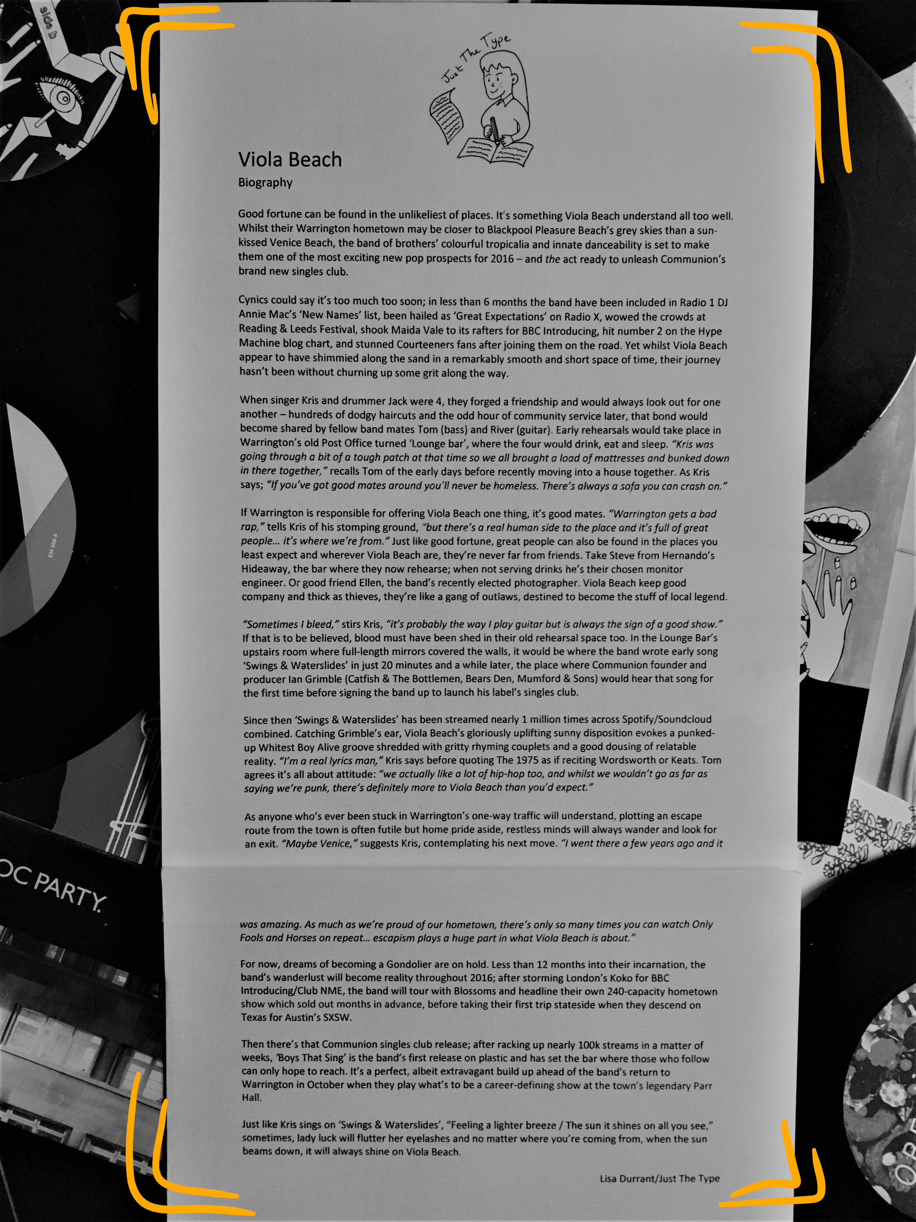 VIOLA BEACH Artist Biography Location: Warrington – UK Label: Communion Project Type: Biography. Related